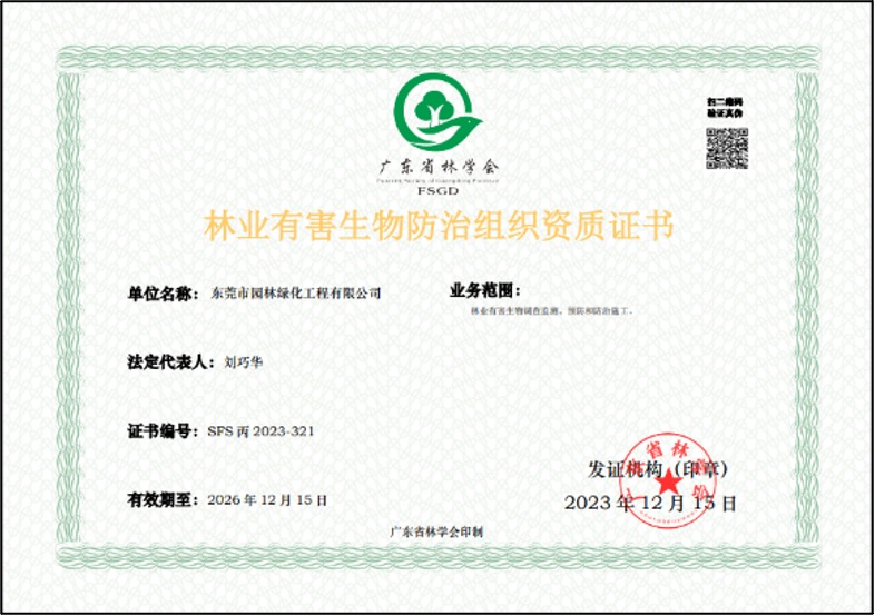 林業(yè)有害生物防治組織資質(丙級)