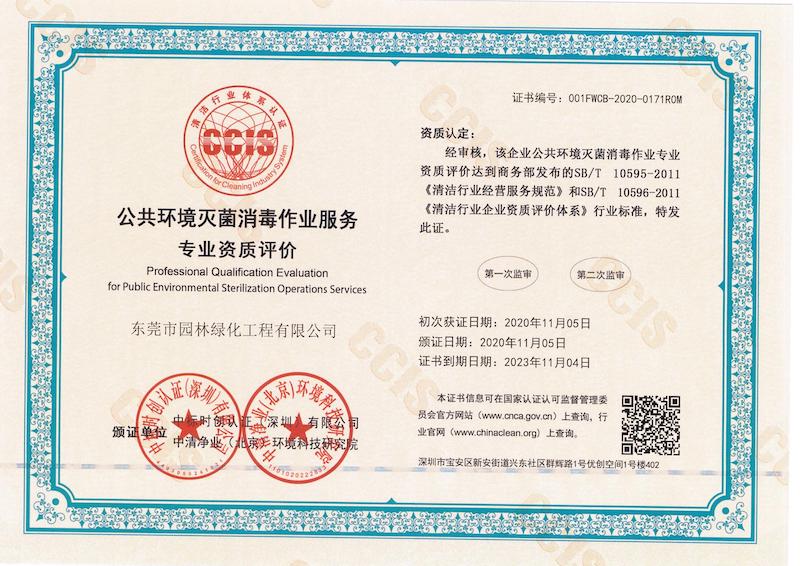 公共環(huán)境滅菌消毒作業(yè)服務專業(yè)資質評價